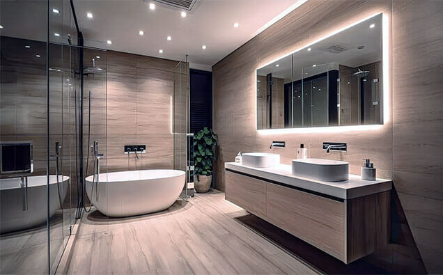 Installation of multi-function bathroom units combining extraction, lighting and heating in one streamlined fixture for maximum comfort.